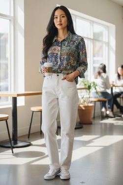 Vintage Agora Fairy Patchwork Sheer Mesh Floral Three-quarter Sleeve Button-down Blouse - Size US Women M$15Bellevue, WA
