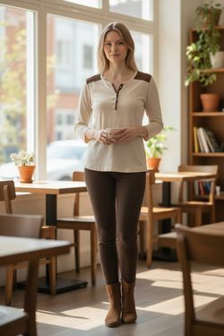 Lauren Ralph Western-style Cream Henley Shirt Suede Shoulder Patches Button Trim - Women S$10Bellevue, WA