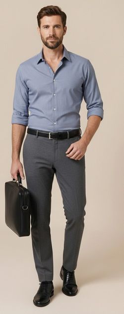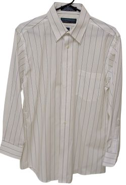 Claybrooke Men's White with Blue Vertical Stripes Dress Shirt