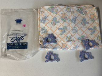 Avon Easter Tablecloth-oblong 52”x70” and 4 wood rabbit napkin holders-$5 for both$5Columbia, TN