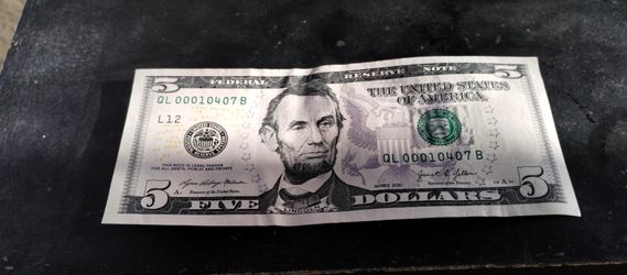 Low Serial Number Five Dollar Bill $20Fallbrook, CA