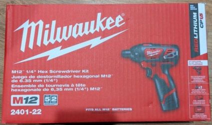 Milwaukee - M12 12V Lithium-Ion Cordless 1/4 in. Hex Screwdriver Kit with Two 1.5Ah Batteries, Charger and Tool Bag$90El Monte, CA