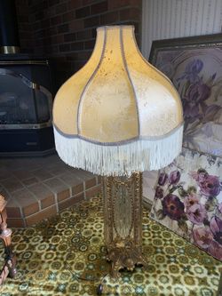Vintage Ornate Gold Lamp With Fringe Shade$25Lynden, WA