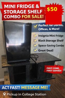 Insignia Mini Fridge + Free Storage Shelf Combo – Perfect for Dorm/Office – Must Go Today$50College Station, TX