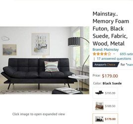 Free Mainstay.. Memory Foam Futon, Black Suede, Fabric, Wood, Metal $0Corona, CA