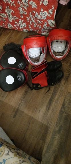 Martial arts Head Gear, Mitz. Also Gloves For Sparing. Also The My Hero Academia Midoriya Izuku Boots Cosplay