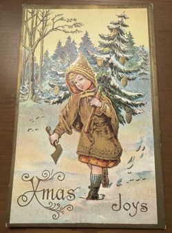 Gold Robe Boy Carrying Christmas Tree ~ Antique Embossed Postcard EARLY 1900’s$20Chula Vista, CA