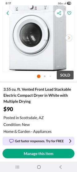 3.55 cu. ft. Vented Front Load Stackable Electric Compact Dryer in White with Multiple Drying$90Scottsdale, AZ