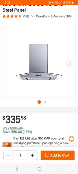 30 in. Convertible Island Mount Range Hood in Stainless Steel and Glass with Mesh Filter and Stainless Steel Panel$140Scottsdale, AZ