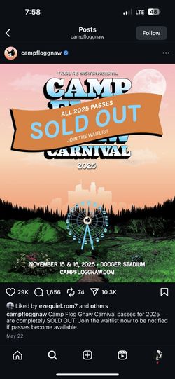 Camp Flog Gnaw wristband GA$400Los Angeles, CA