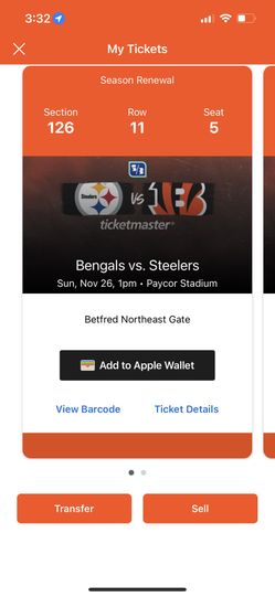 Steelers @ Bengals 11/26$225Cincinnati, OH