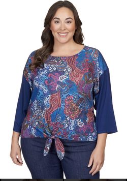 Ruby Rd Women's Abstract Paisley Tie Front Mixed Knit 3/4 sleeves Top 2X$22Albany, NY