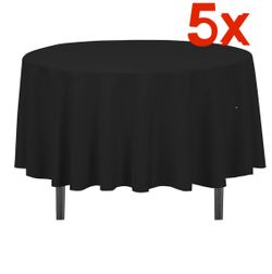 5 Pcs Black 90 inch Round Polyester Table Cloth Tablecloth Table Cover Party Wedding Linen Easy laundering in your home washing machine, Easy care -$55Rowland Heights, CA
