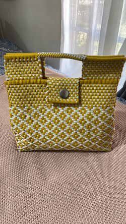 Yellow & White Woven Tote. Plastic.$20Santa Ana, CA