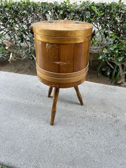 Sewing Basket Bucket Vintage Wood Stand 3 Legs Tripod Primitive holder$30Fullerton, CA