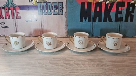 Vtg Set of 4 Looney Tunes Tea Cups Saucers White & Gold Inlay$30San Antonio, TX