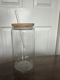 Clear Glass Can Cup With Bamboo Lid And Straw (16oz)$4Redmond, WA