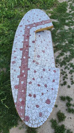 SoldVintage Mid-Century Mosaic Surfboard Shaped Coffee Table 72x23x15.5"$200Los Angeles, CA