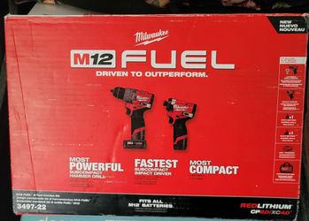 Milwaukee Fuel M12 Brushless Hammer Drill And Impact Drill With 2 High Output Batteries, Charger And Bag NEW$200Oroville, CA