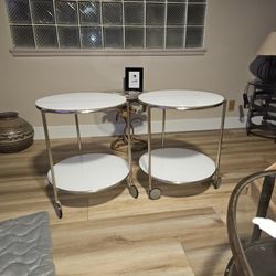 Pretty White Round Metal And White Glass Side Tables$100West Covina, CA