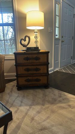 Rattan And Wood Three Drawer Side Table $250Deerfield, IL