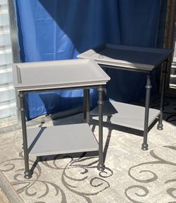 Pair of end tables iron and wood. Gray wood and dark iron. Sturdy$50Sun City, AZ