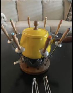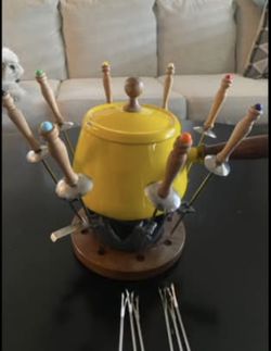 Complete 1960’s Enamel Fondue Set with cast iron warmer. Usable$50Sun City, AZ