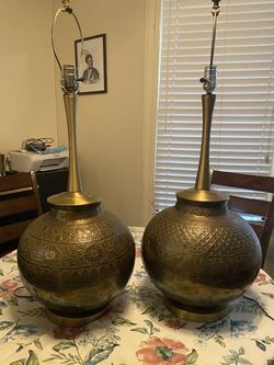 Pair Large MCM 1950’s hand molded brass lamps. Work Great, No Shades. Price For Pair And Firm$150Sun City, AZ