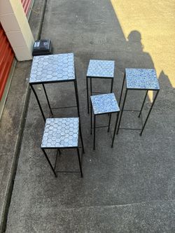 Set of 5 Modern Tile-Top Accent Tables / Plant Stands 🌿$50Norcross, GA