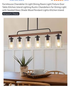 Farmhouse Chandelier 6-Light Dining Room Light Fixture Over Table Kitchen Island Lighting Rustic Chandeliers for Dining Light with Seeded Glass Shade $105Concord, NC