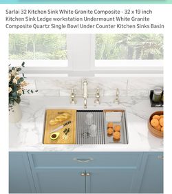32 Kitchen Sink White Granite Composite - 32 x 19 inch Kitchen Sink Ledge workstation Undermount White Granite Composite Quartz Single Bowl Under Coun$255Concord, NC