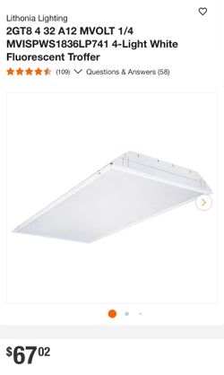 2GT8 4 32 A12 MVOLT 1/4 MVISPWS1836LP741 4-Light White Fluorescent Troffer$45Concord, NC