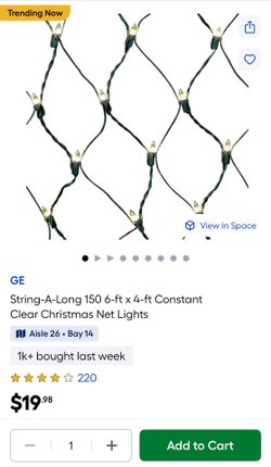 String-A-Long 150 6-ft x 4-ft Constant Clear Christmas Net Lights$11Concord, NC