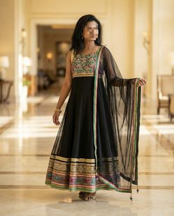 Black Salwar Suit with Green Embroidery, Gold Zari Border & Net Dupatta$60Renton, WA