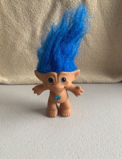 Vintage troll doll, likely produced by Ace Novelty, recognized by its blue hair and a gem or "wishstone" embedded in its belly $15$15Dallas, TX
