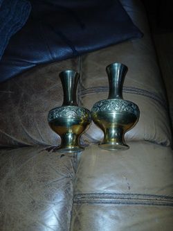 Pair Vintage Etched Brass Vases With Embossed Scroll Design 7" Tall$30North Highlands, CA