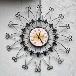 Mid Century Wrought Iron Clock Vintage Black Leaves Wall Starburst$140Gorst, WA