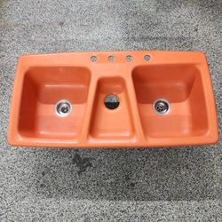 Kohler Tiger Lily Orange Trieste Three 3 Basin Kitchen Sink 1974 Enameled Cast Iron Vintage USA$1,550Spanaway, WA