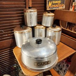 Vintage Aluminum and Copper Nesting Canisters with Cake Plate$70Gorst, WA