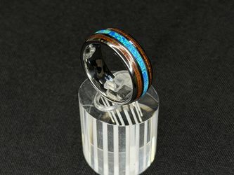 Handcrafted Tungsten Ring with Blue-Green Opal-Like Scale Inlay & Wood Veneer – Made in Hawaii$50Gardena, CA