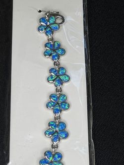 Handcrafted Sterling Silver 925 Bracelet with Blue-Green Floral Inlay – 7"" – Made by Pearl Sterling, Honolulu$130Gardena, CA