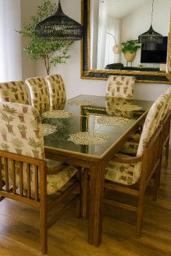 Vintage Henredon Scene Two Dining Table Set 1979 – Mirrored Top, 1 Leaf, 8 Chairs (4 Arm, 4 Side)$2,800Sherman, TX