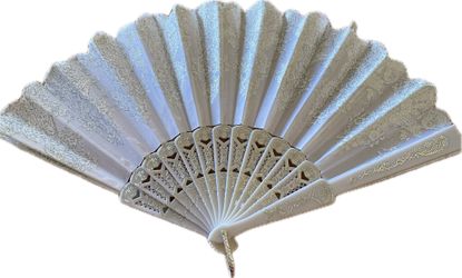 Wedding-Folding Hand Fan White w/Silver Color Glitter open size 16.5x9"$5Vista, CA