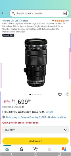 Olympus (OM Systems) 40-150 2.8 Pro$1,400Canyon Country, CA