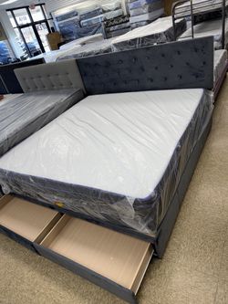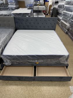 King size bed frame storage bed headboard frame with mattress included brand new set $380 only$380Addison, IL