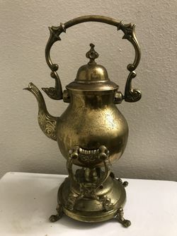 Antique Brass Teapot With Stand, Ship Brass Teapot With Stand, Engraved Brass Ship Teapot $80Seattle, WA