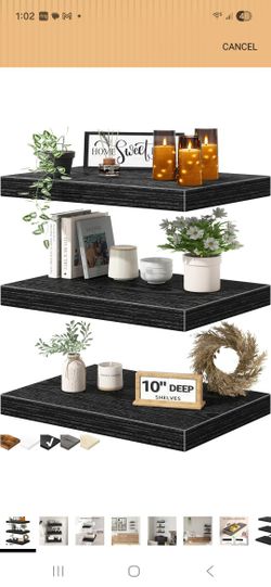 QEEIG 10" Deep Floating Shelves for Wall - 10 x 16 inch Book Shelf Bathroom Bedroom Kitchen Living Room Hanging Bookshelf Farmhouse Set of 3, Black (0$25Bakersfield, CA