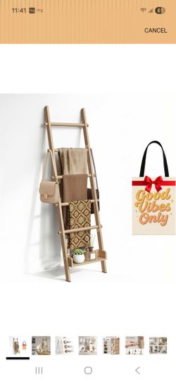 Wooden Blanket Ladder for Living Room & Bedroom, 6-Tier Rustic Decorative Farmhouse Style Quilt Rack with Side Hooks, Wall Leaning Ladder Shelf for Ba$40Bakersfield, CA