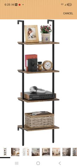 Ladder Shelf 4 Tiers Metal Industrial Bookshelf,Brown Wood Tall Open Storage Rack and Display Shelves,Wall Mount Wide Book Case for Home Office Bedroo$40Bakersfield, CA
