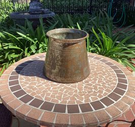 Antique Large Copper tinned Pot with design and signed. 9” X 11”$200Upland, CA